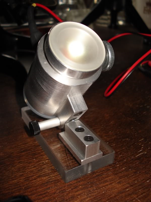 von den ganzen LEDs, die ich bislang gebaut habe, ist es das erste Modell, das nicht in das Lampenhaus, dem Leuchtrohr oder der Lampenfassung eines Mikroskopes adapiert wird und ein anderes Leuchtmittel, sei es Glühlampe, Halogenlampe oder gar eine Gasentladungslampe ersetzt, sondern eine eigenständige Einheit ist, die nicht mechanisch mit dem Mikroskop selbst verbunden ist. Meinen Vorschlag, die LED-Einheit anstelle des Schwenkspiegels ins Rohr zu stecken hattest du abgelehnt, da der Durchmesser der Bohrung für den Schwenkspiegel nicht so einheitlich genormt war wie das RMS-Gewinde der Objektive. Es blieb also nur die separate Lösung, die ich mal eben umgestzt habe.