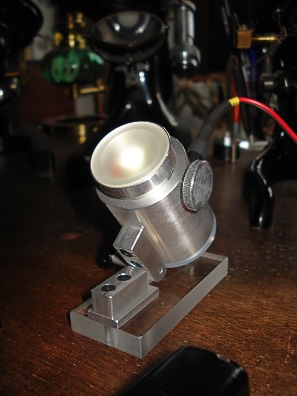 die Idee, das Ganze in Messing zu bauen, hatte Bernd auch schon. Aber das ist nunmal eine neue, praktische Leuchte in nüchternem Technik-Design, und dise soll schließlich den Mikroskopen keine Konkurrenz machen sndern sie sinnvoll ergänzen. Vielleicht wäre Schwarz noch eine Alternative.